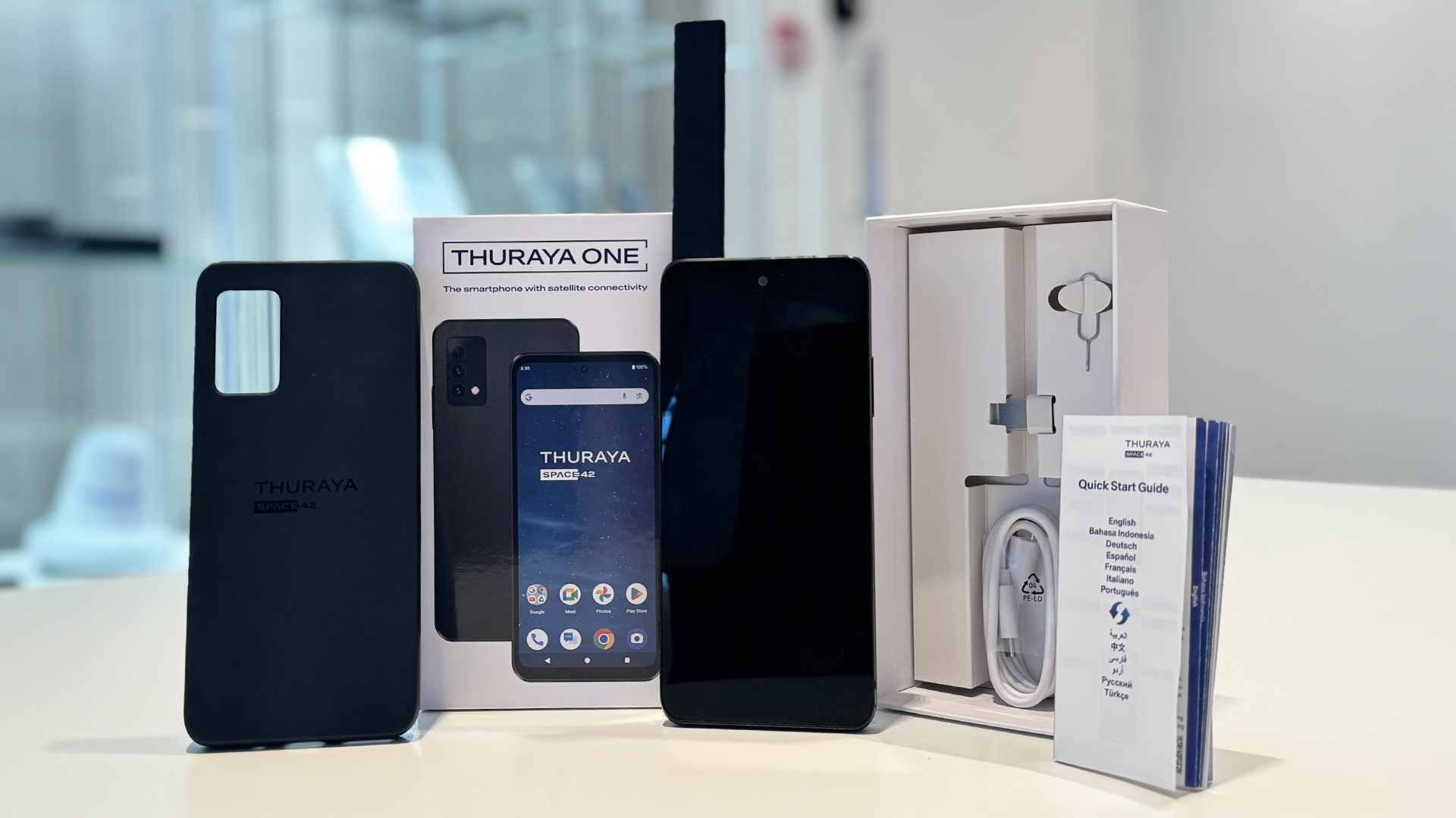 Παρουσιάζουμε το Thuraya One: το πρώτο παγκόσμιο smartphone με συνδεσιμότητα κινητής τηλεφωνίας και δορυφόρου. Είναι ένα έξυπνο δορυφορικό τηλέφωνο που σας προσφέρει συνδεσιμότητα αδιάλειπτη, ακόμα και όταν βρίσκεστε εκτός εμβέλειας περιοχών κάλυψης κινητής τηλεφωνίας.